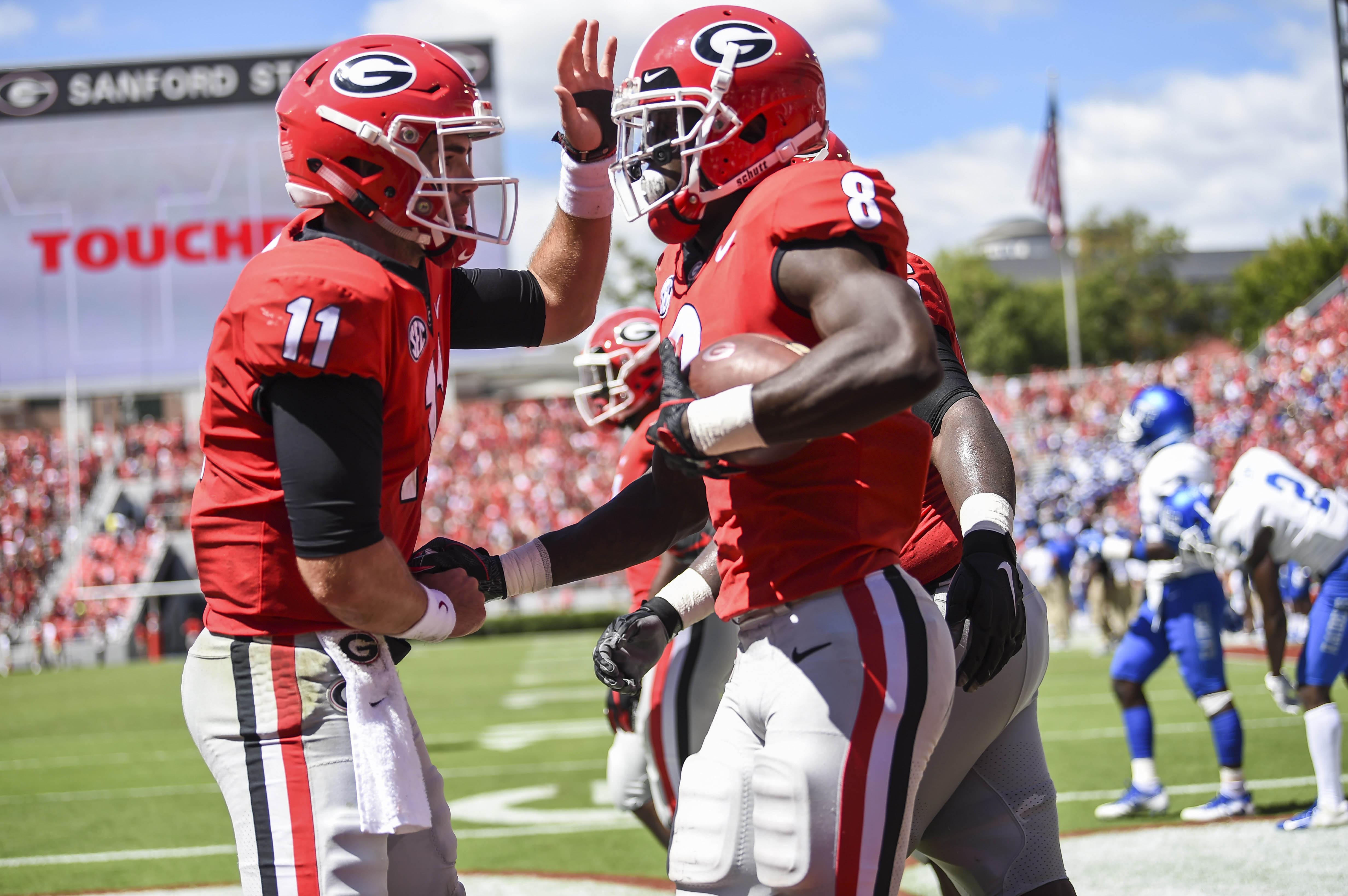 Quarterback Jake Fromm led the charge on offense as Georgia rolled over MTSU. 49-7.