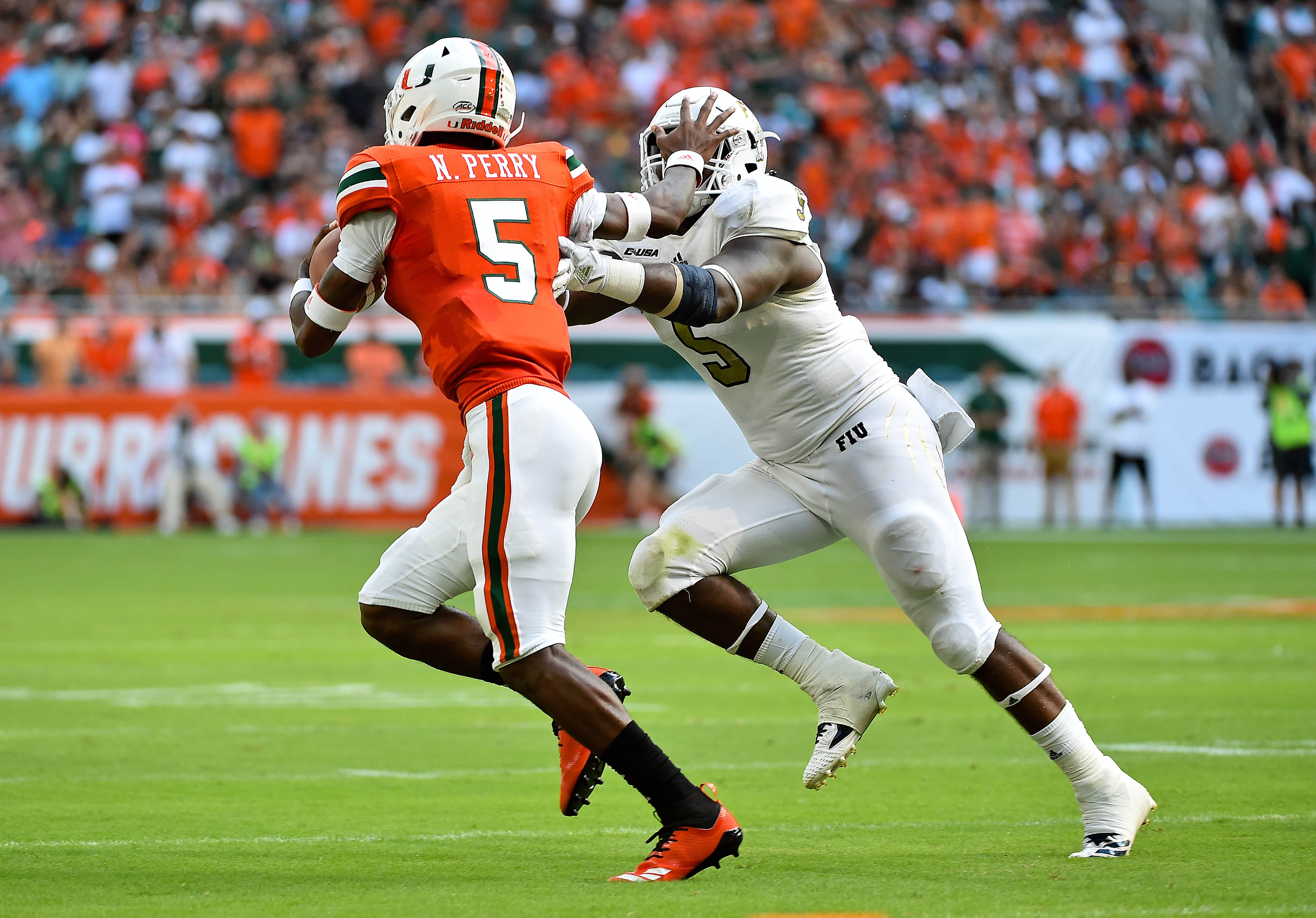 Perry entered the game in the first quarter and didn't look back, leading the Hurricanes to a 31-17 win over FIU.