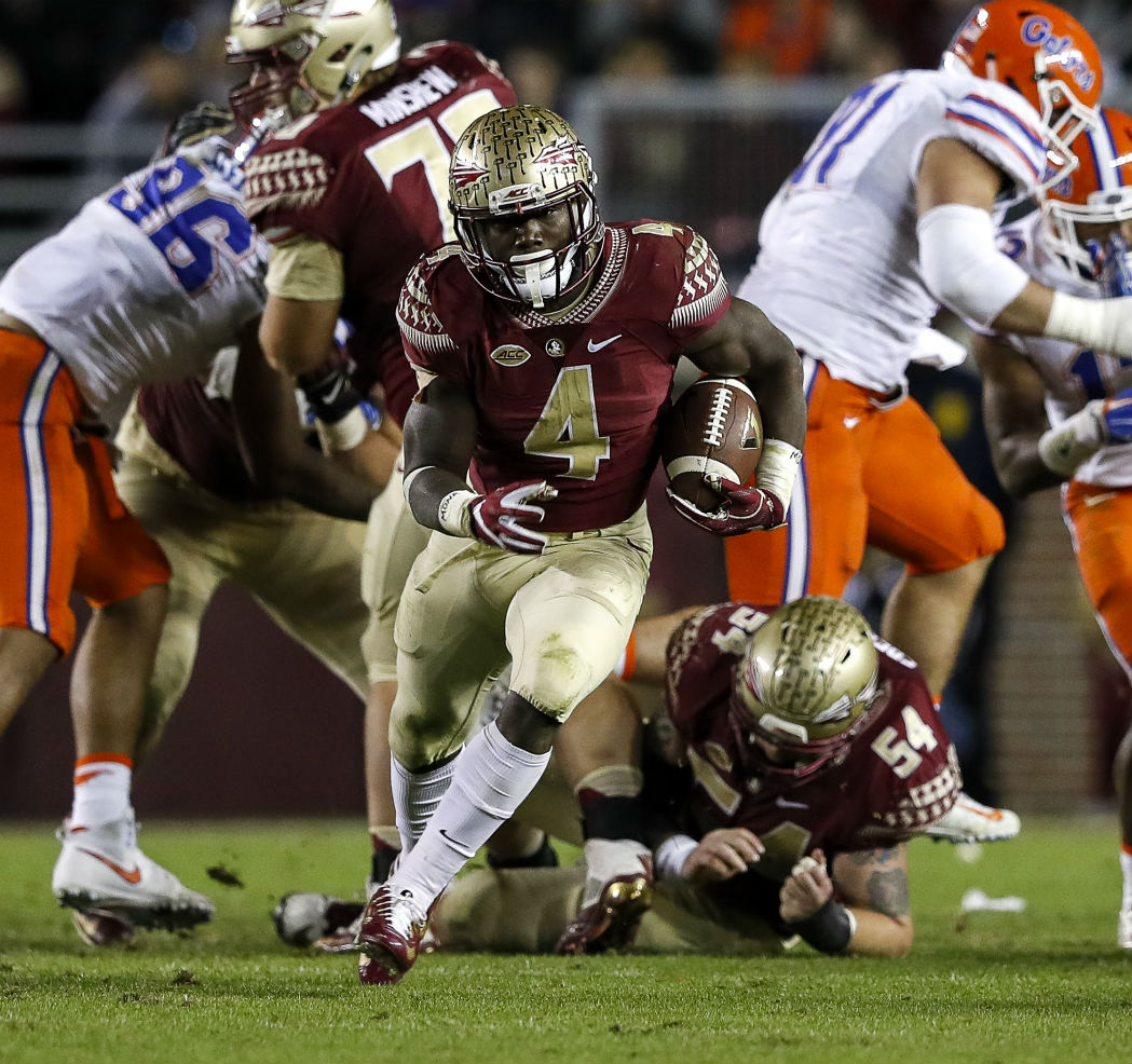 FSU's RB breaks nine tackles, while defensive line also shines in big rivalry win.