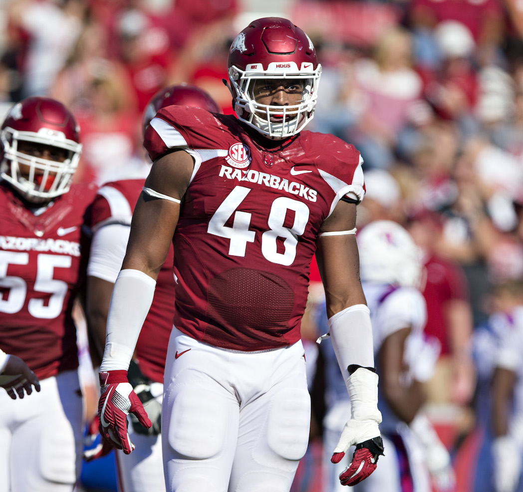 Alabama's pass rush gets pressure on Arkansas QB Austin Allen on a ridiculous 69 percent of his dropbacks.