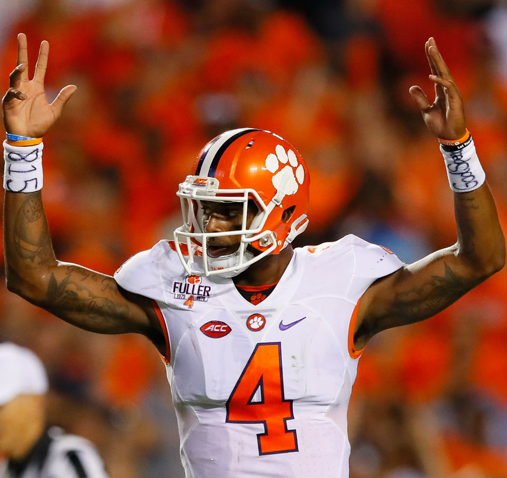 Clemson's Heisman candidate struggles early but bounces back to lead Tigers to win. Auburn's QB issues continue, but DE Carl Lawson stars.
