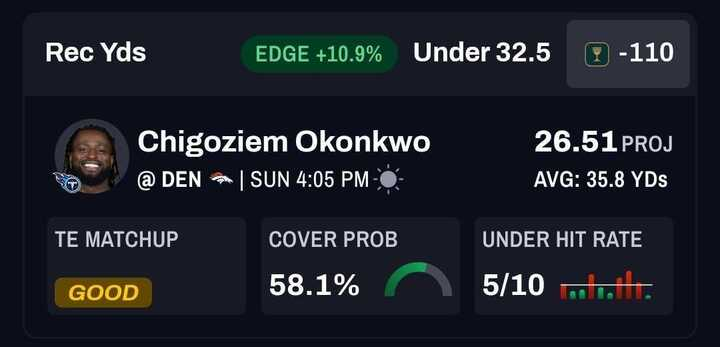 - Chigoziem Okonkwo faces a tough matchup against Denver: The Broncos led the NFL with an 85.6 PFF coverage grade on throws to tight ends last season, while also ranking top-six in passer rating allowed (81.5), yards per target (6.4), and open target rate (54.6%).