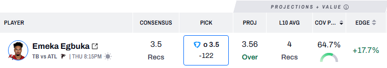 WR Emeka Egbuka, Tampa Bay Buccaneers: Over 3.5 receptions (-122)