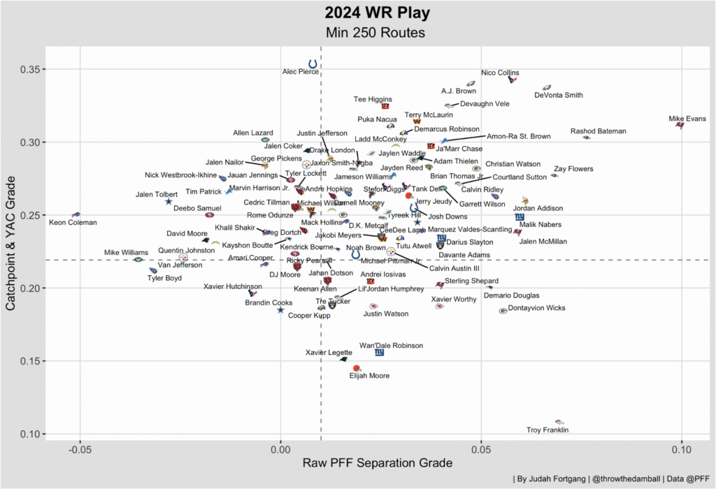 One of PFF’s previous studies on coverage types found that talent wins out more often in man coverage than zone — elite wide receivers consistently beat lesser cornerbacks, and vice versa.