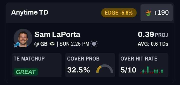 Sam LaPorta, Detroit Lions (+190)