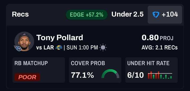 Enter the Rams defense, which also possesses a high-powered pass rush that the Titans’ pass protection will struggle to hold in check. To make matters worse, Pollard will have to contend with drawing coverage from Nate Landman, who earned the second-highest PFF coverage grade (90.8) among linebackers in Week 1.