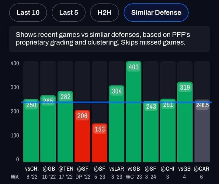 The veteran quarterback will have just five days to learn the offense, which will likely lead to a limited playbook. To make matters worse, the Bengals head to Green Bay to take on one of the strongest defenses in the NFL (79.0 team PFF defense grade; fourth). Micah Parsons headlines a potent Packers pass rush that has generated pressure at the fifth-highest rate (42.5%) in the NFL. Flacco ranks just 31st out of 38 qualifying quarterbacks in PFF overall grade under pressure (46.4) — below that of even the quarterback he’s replacing. Cincinnati (44.0) places just one spot ahead of Cleveland (39.9) in team PFF pass-blocking grade, with both falling in the bottom five in the NFL.