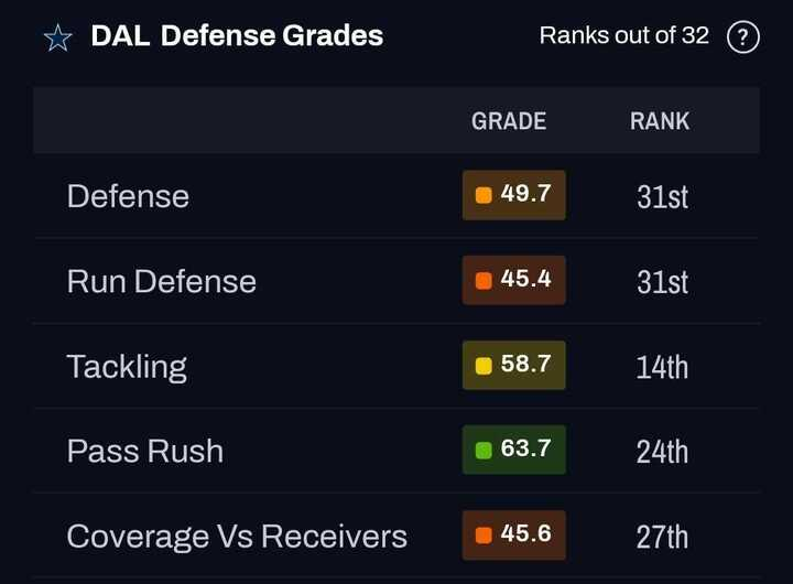 From a grading perspective, the Cowboys rank in the bottom eight in both positively and negatively graded play rate against the run.