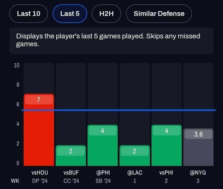 While Kelce has seen some opportunities, critical mistakes have capped his production. He dropped two passes in the fourth quarter last week — including a would-be touchdown — and has finished under this receiving line in both games this season.