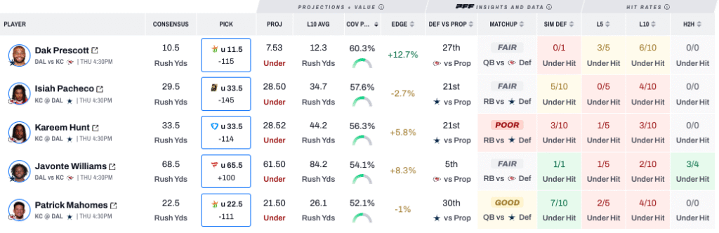 Thanksgiving is here, and so is one of the best football slates of the season. With Packers–Lions, Chiefs–Cowboys and Bengals–Ravens headlining the holiday lineup, PFF’s analysts have locked in their favorite bets for all three matchups, powered by the PFF Player Prop Tool.