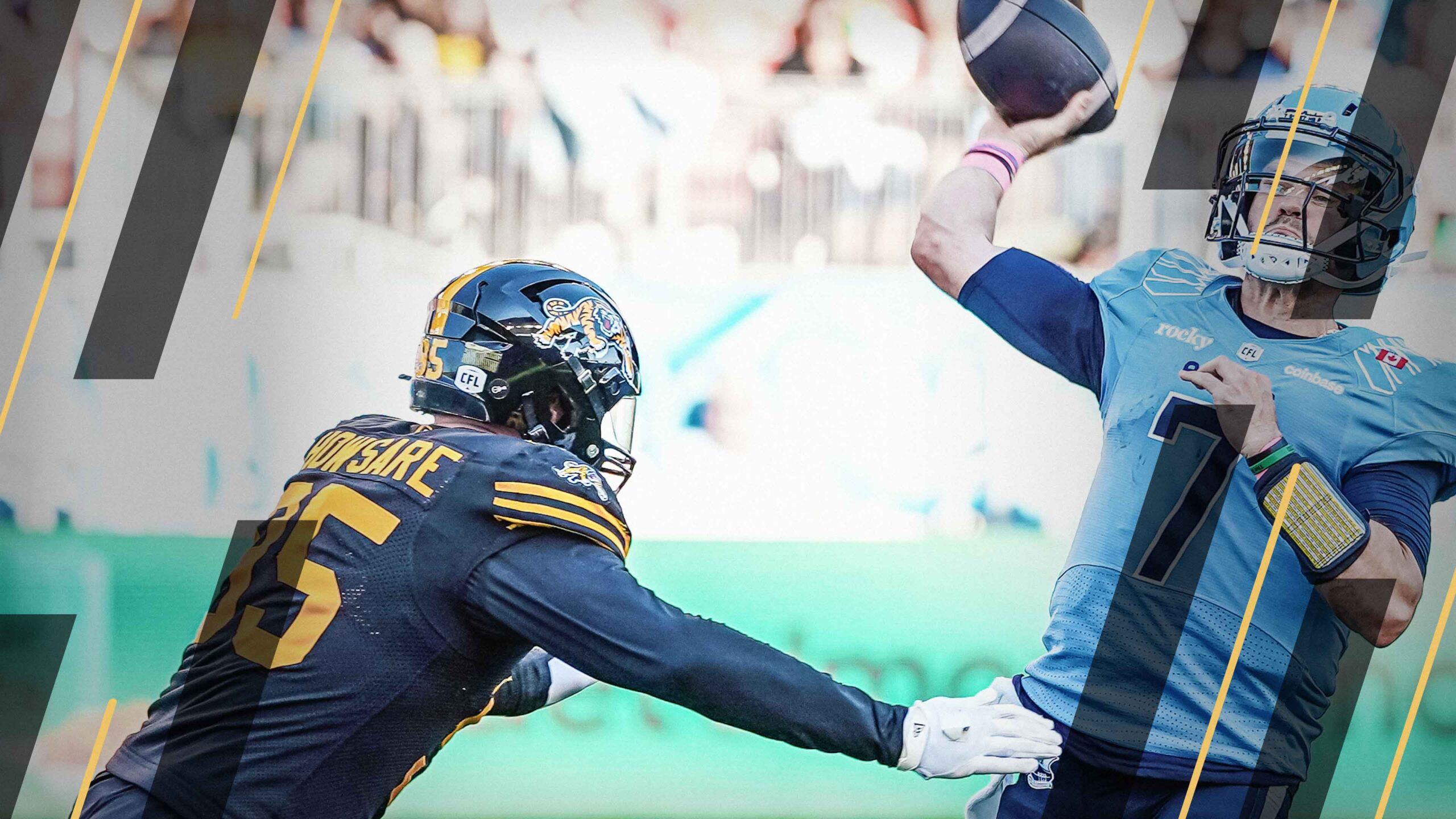 - Julian Howsare wreaks havoc on Toronto’s passing game: The Hamilton edge rusher recorded a ridiculous five sacks and 12 total pressures en route to a 92.4 pass rushing grade.
