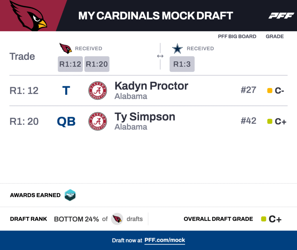 12. *TRADE* Arizona Cardinals: T Kadyn Proctor, Alabama