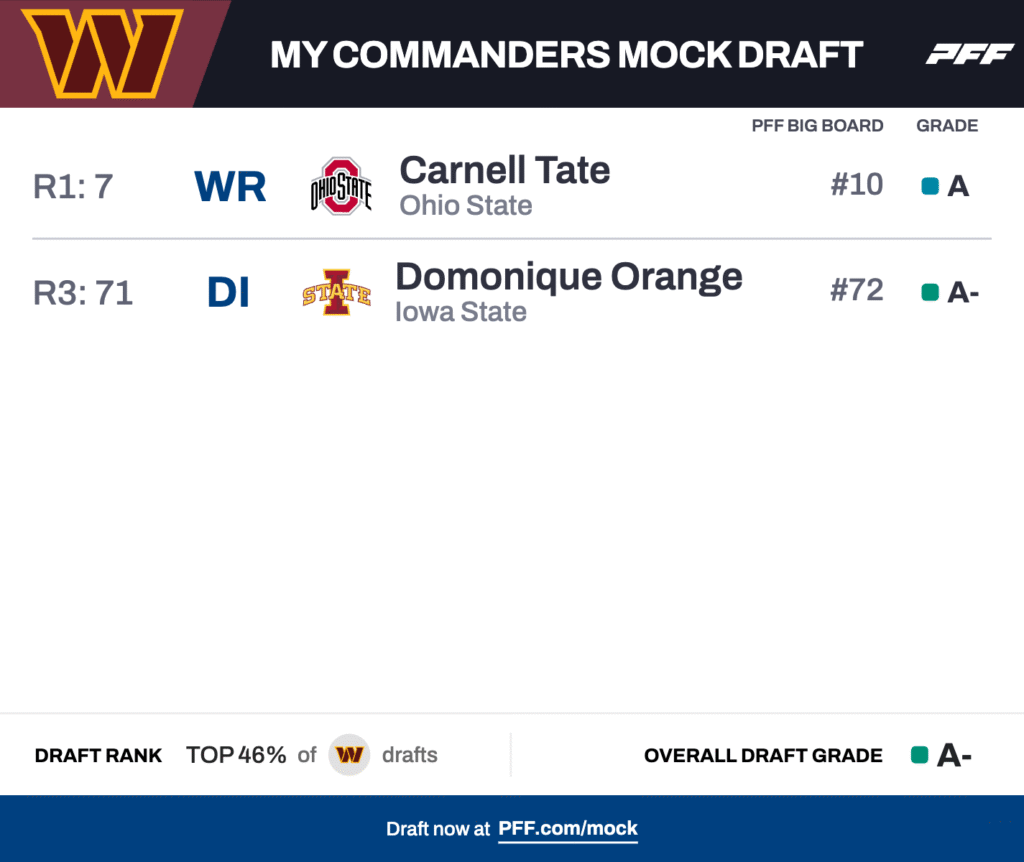 7. Washington Commanders: WR Carnell Tate, Ohio State