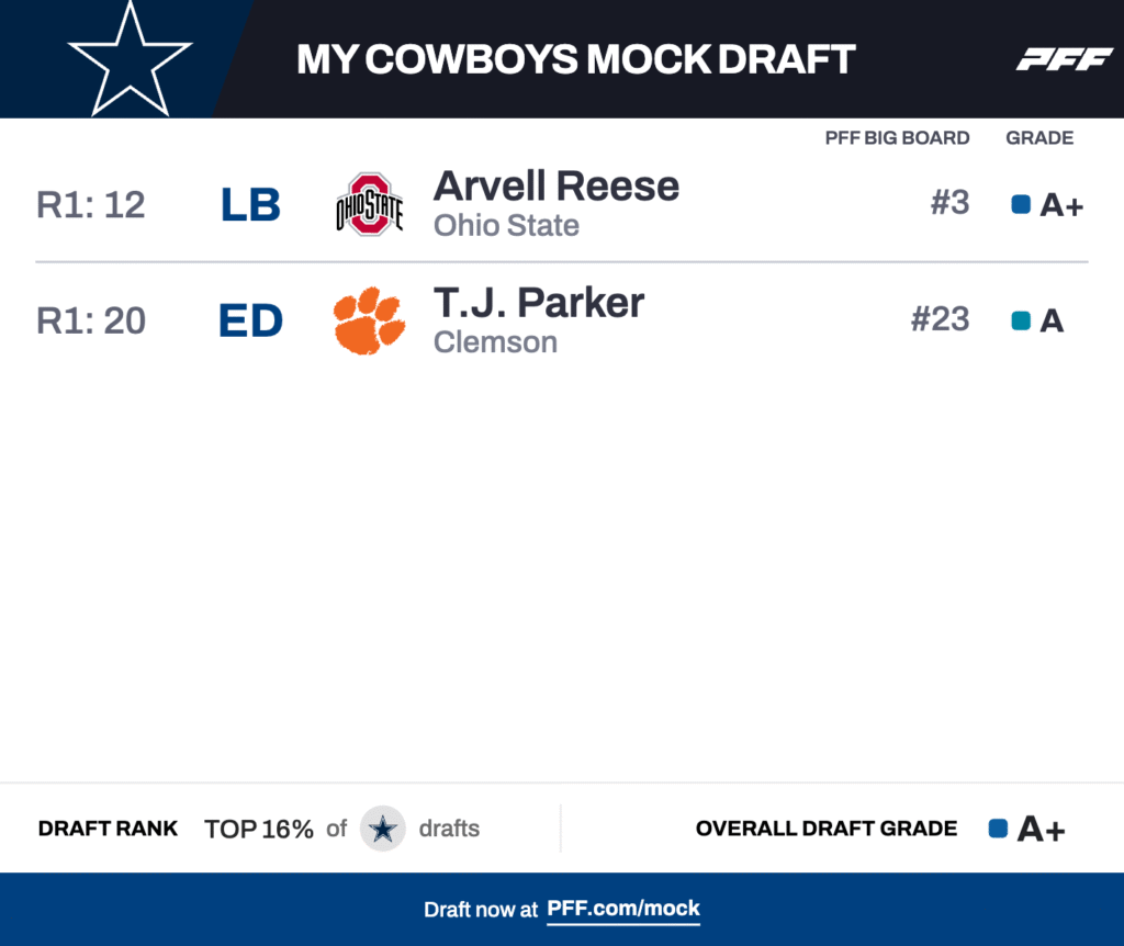 20. Dallas Cowboys (via Packers): EDGE T.J. Parker, Clemson