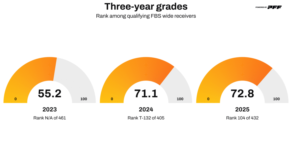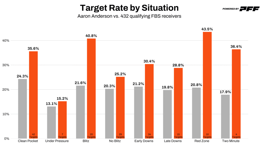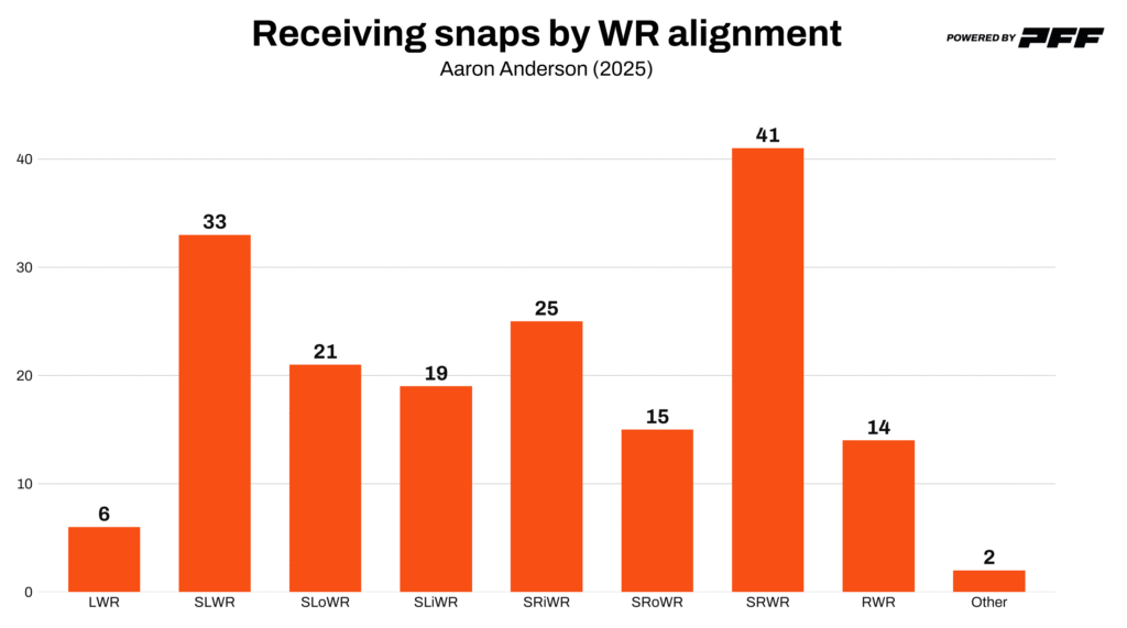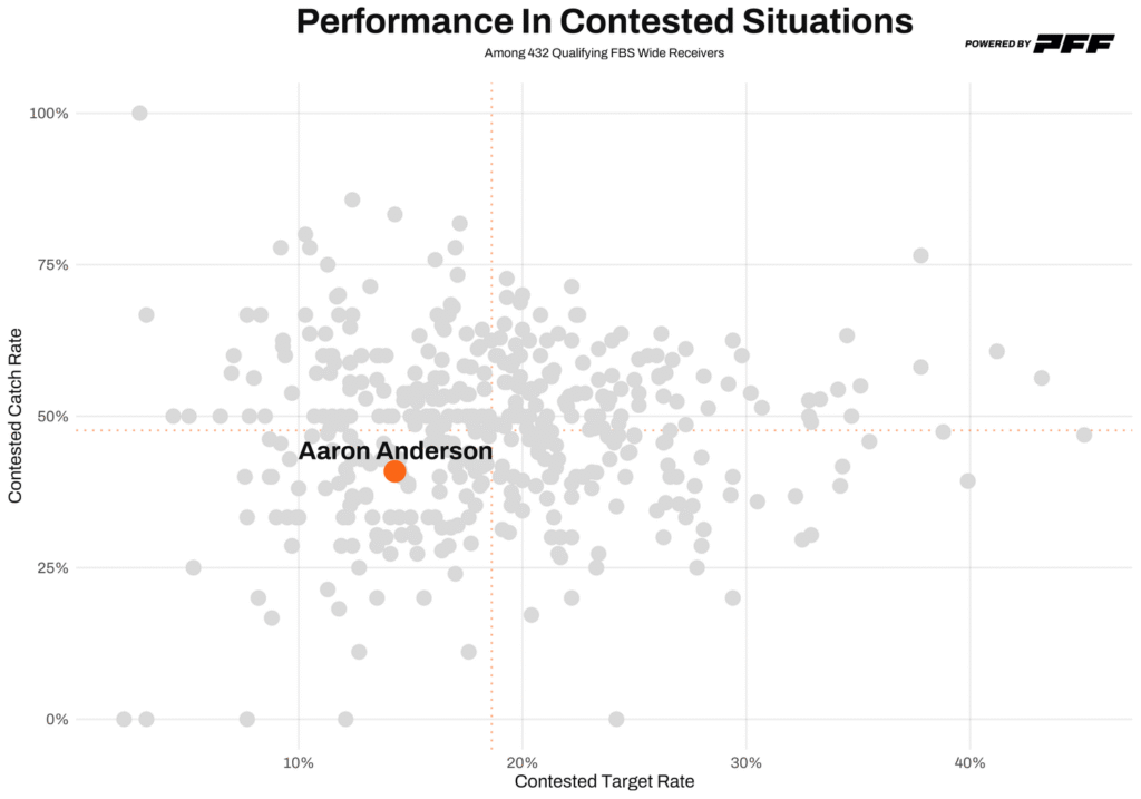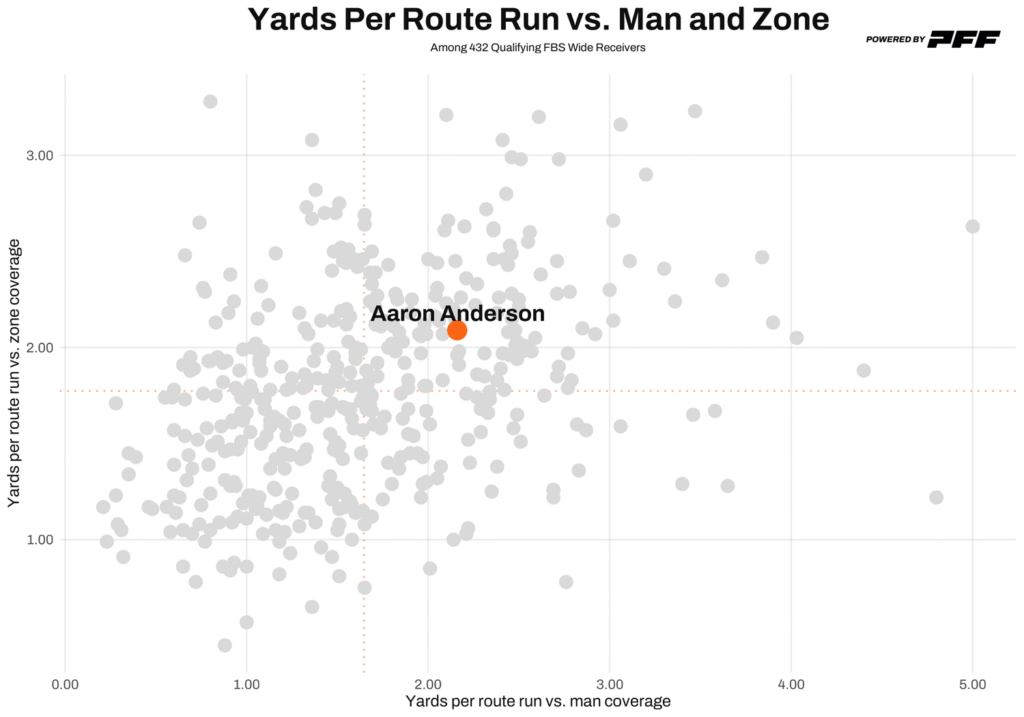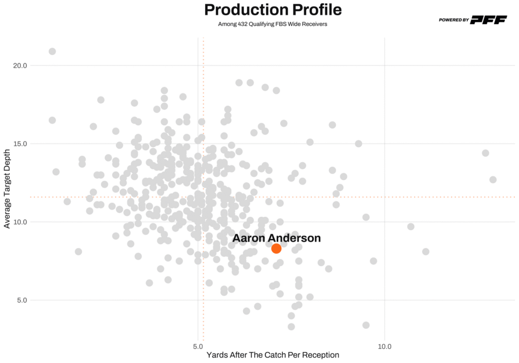 Anderson is a small but explosive slot-only receiver with strong separation ability and yards-after-the-catch potential. While his size may limit his appeal, he profiles as a solid Day 3 option who can contribute in a rotational role.