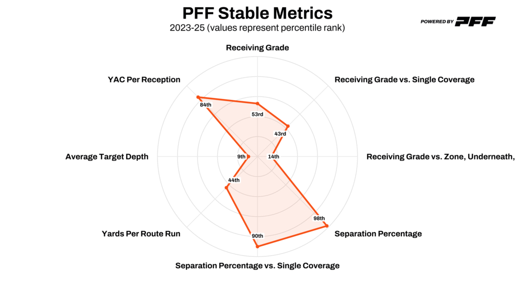 Separation by coverage look (All routes of 5-plus yards, 2025)