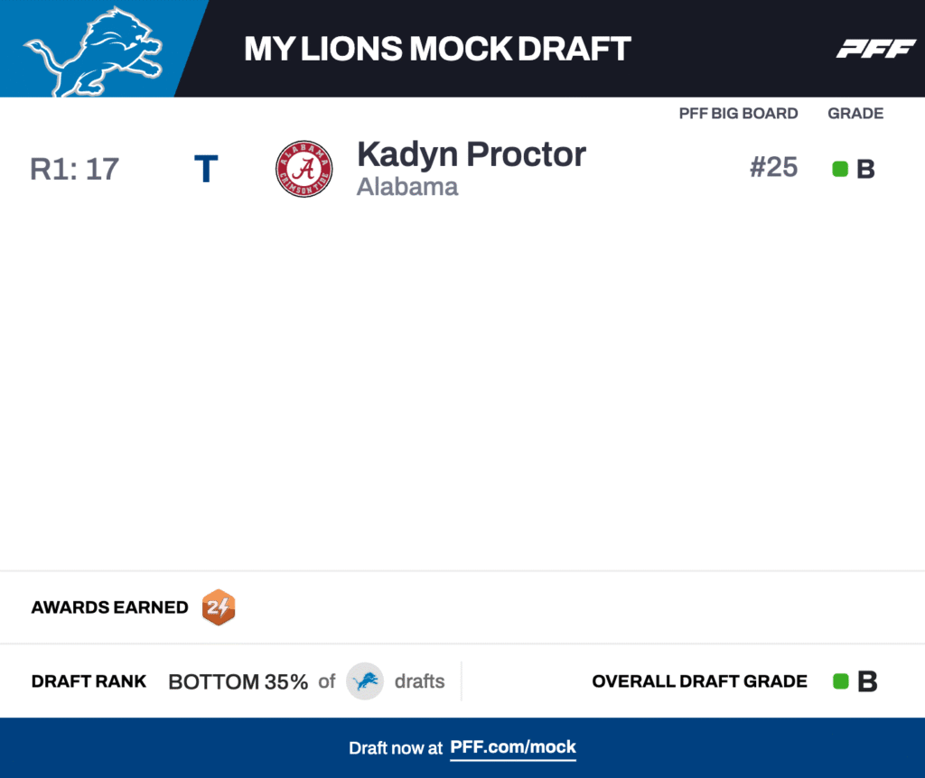 17. Detroit Lions: T Kadyn Proctor, Alabama