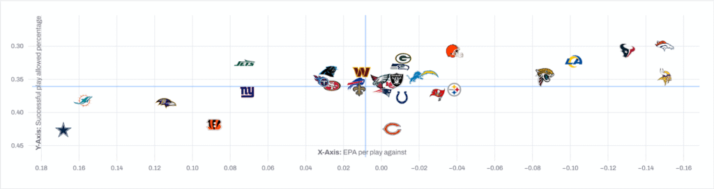 Success rate allowed and EPA allowed per play among NFL teams:
