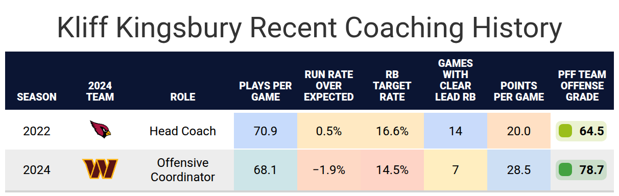 Using PFF’s exclusive data, we evaluate player performance, competition for touches and how teammates and coaching staffs will impact each player's fantasy football outlook.