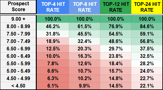 - This is important context when understanding hit rates, as far more prospects will not become fantasy-relevant because of the large pool of players.