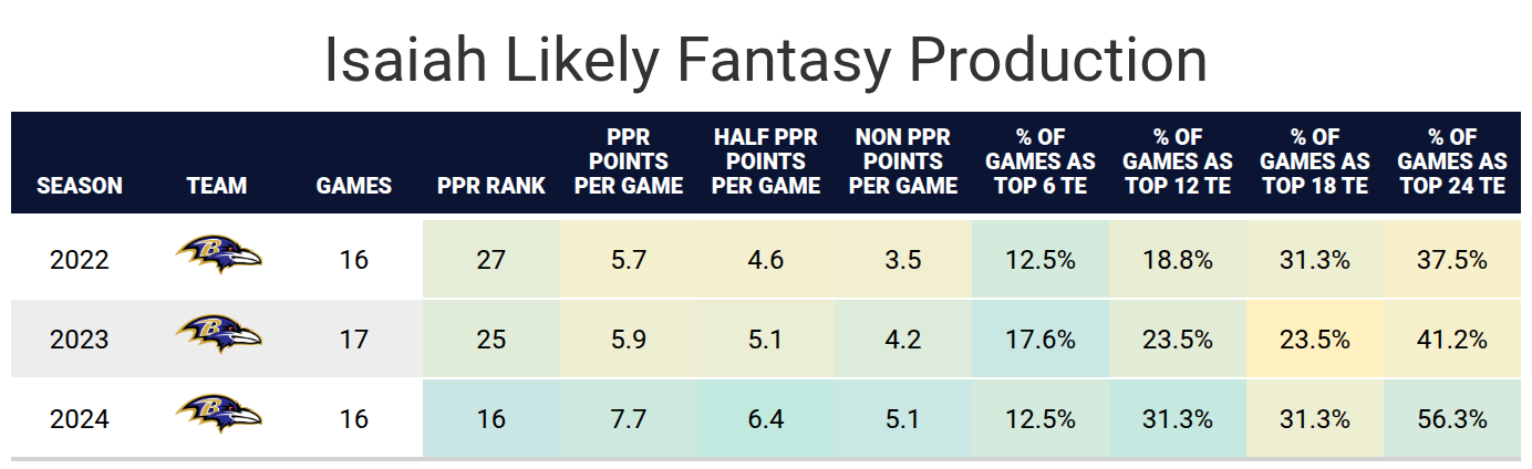 Isaiah Likely, Baltimore Ravens (ADP: 15.07)