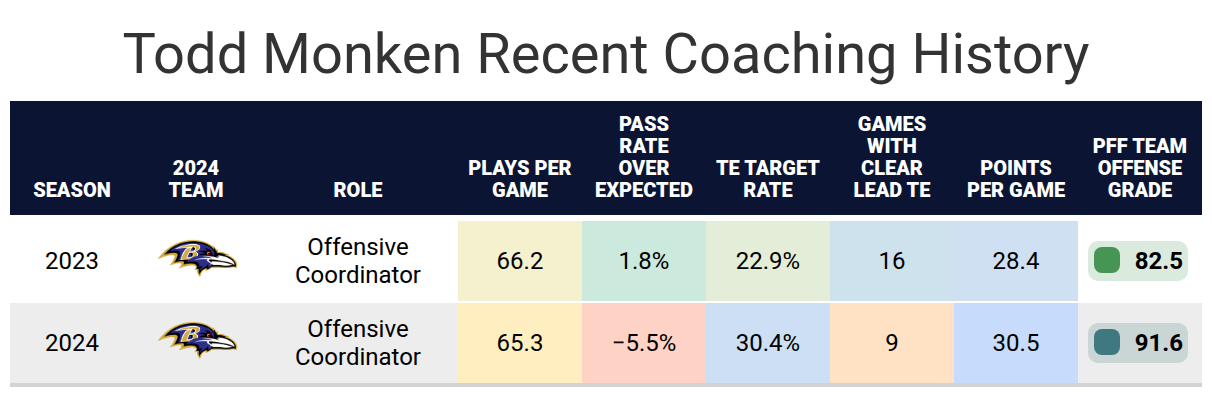 Likely will be in his third season of Todd Monken’s offense and his fourth season with Lamar Jackson at quarterback. While there are general drawbacks of being in a run-first offense with a quarterback who loves to run, the Ravens have one of the elite offenses in the league, and they have consistently prioritized the tight end position. The pros here far outweigh the cons, as the Ravens' tight ends, dating further back with John Harbaugh, have had significant fantasy value.