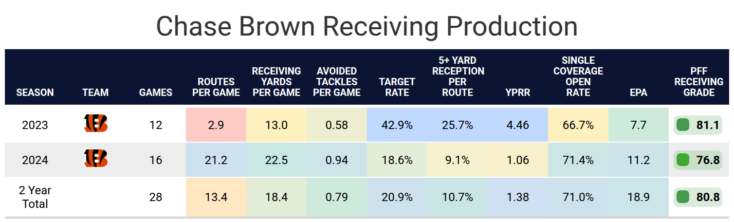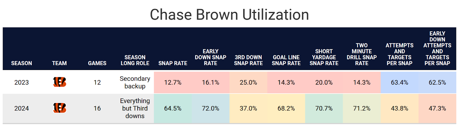 - Chase Brown was a league-winner: Brown wasn’t drafted to be a fantasy starter, but scored the third-most fantasy points per game over an eight-game stretch at the end of the season.