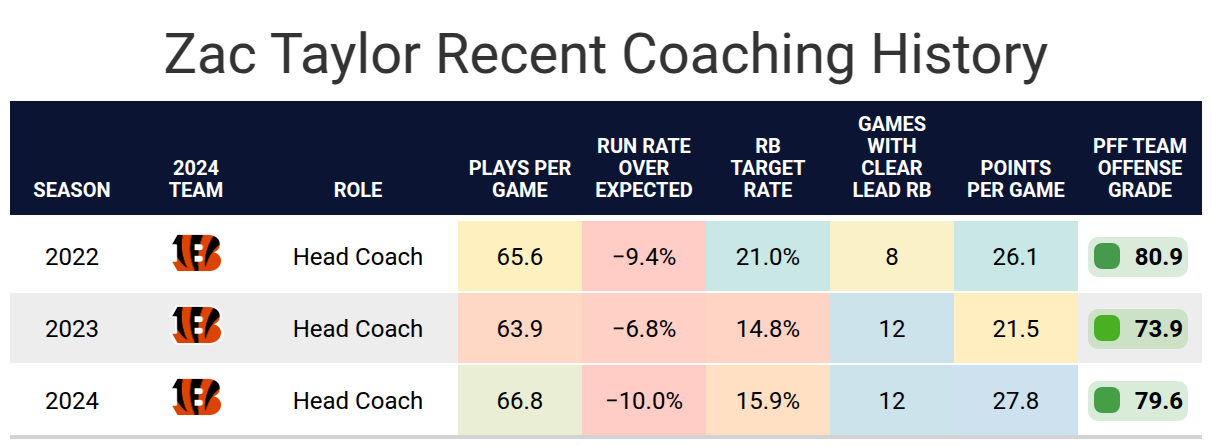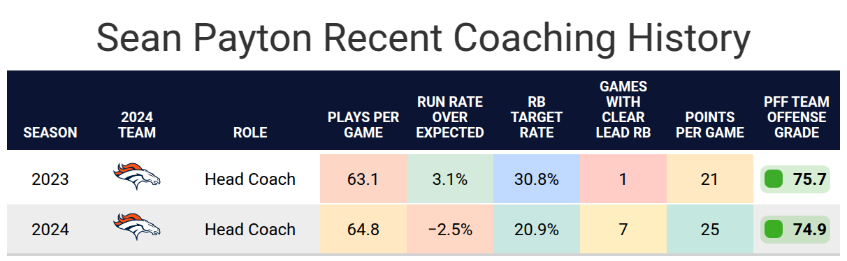 Roman has generally led run-first offenses, with last season being an exception, likely driven by the quality of the running back room. After investing heavily in the position this offseason, the Chargers are expected to return to a more run-heavy approach.