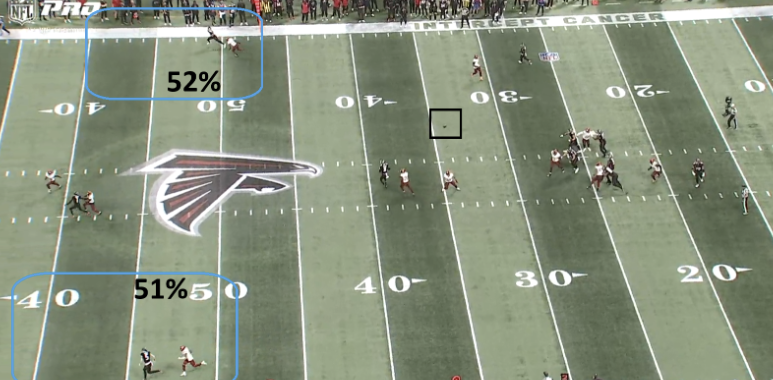 On this example, it’s 2nd-and-16 in the second quarter. The Falcons are only winning by 3 and, the Commanders have the down and distance advantage.