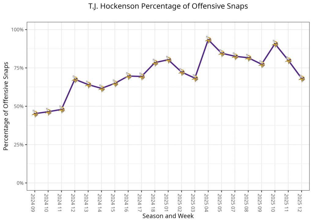 The Vikings turn towards Josh Oliver: The Vikings' run-blocking tight end played over 50% of the offensive snaps for the first time this season.