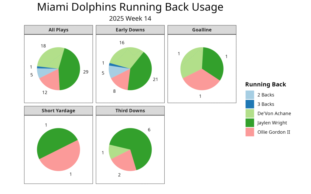 Mitchell was given more opportunities than usual in this game, and he broke one of his runs for 55 yards. This led him to six carries for 76 yards. However, the knee injury knocked him out for the rest of the game. John Harbaugh said after the game that they will know more about the extent of the injury tomorrow. Justice Hill is currently on injured reserve, so this left Derrick Henry and Rasheen Ali as the only other running backs. This mostly caused Henry to play a higher percentage of the early-down snaps.