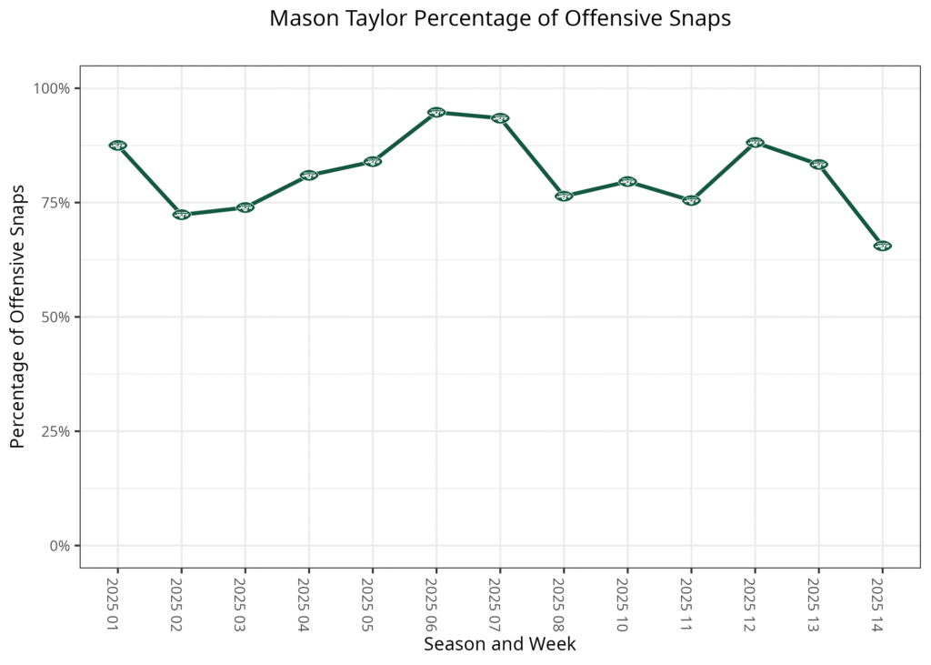- Breece Hall played a season-high 87.9% of the offensive snaps last week. His snap rate wasn’t as high this week, but 75.9% was his second-best for a game this season.