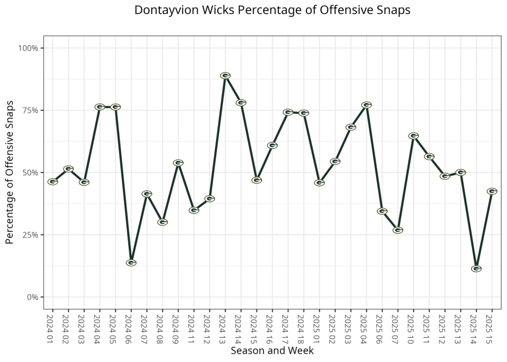 - Green Bay tight end Josh Whyle left the game due to a concussion and didn’t return. The Packers had been using a three-man rotation, and this left them with a two-man rotation. John FitzPatrick led the tight end room in snaps on both early and late downs, but Luke Musgrave caught four passes for 52 yards. This remains a tight end room to avoid, despite Musgrave putting up 9.2 PPR points, given his playing time.