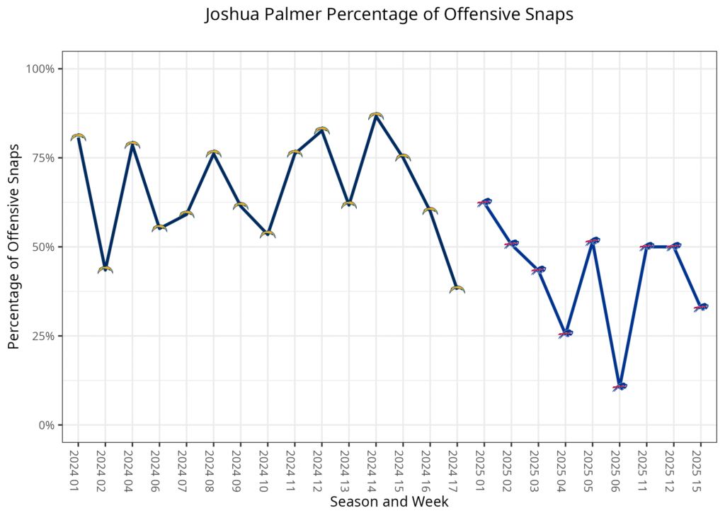 Los Angeles has spent the season with Johnston as its X receiver, Ladd McConkey playing Z in 12 personnel and the slot in 11 and Keenan Allen as the Z in 11. Tre Harris has played in single-receiver sets and has been the primary backup to everyone. Johnston's being inactive allowed fifth-round rookie KeAndre Lambert-Smith to be active. He was active for five of the first six weeks of the season but had only played in one game since then and only earned one catch on the season before this week.