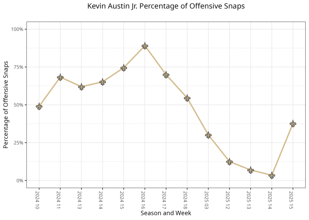 - The Saints elevated wide receiver Kevin Austin Jr. from the practice squad for this game on Saturday.