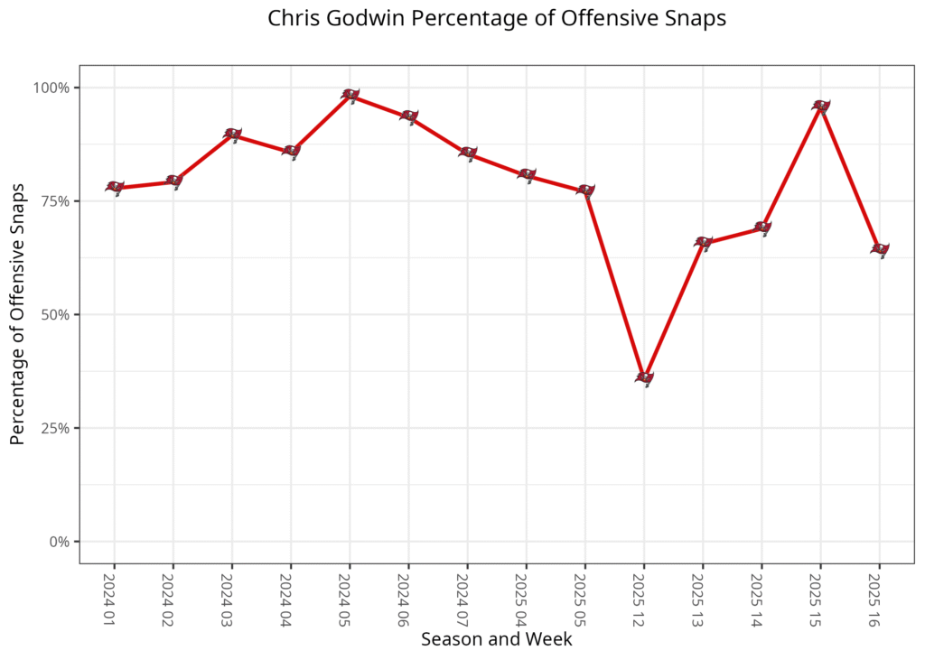 This week, Godwin was no longer given special treatment, leading to less playing time for him and more for almost everyone else. Egbuka was the only other wide receiver to play fewer snaps, but his change was more subtle.