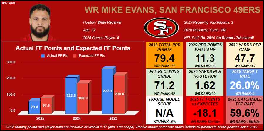 - Mike Evans brings his consistent production to San Francisco: Evans will look for a big bounce back season with the San Francisco 49ers as the team’s potential leading receiver in 2026.