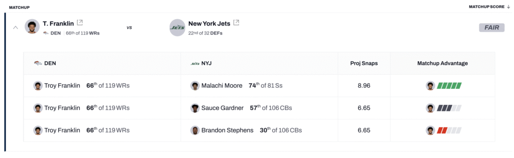 Troy Franklin is in a strong position for one of his best fantasy outings of the season, according to the PFF Matchup Tool.