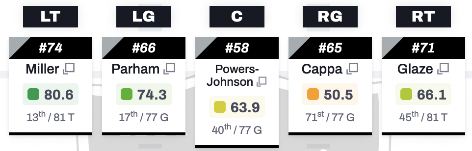However, only Zeitler has played at a high level recently over an entire season. He ranked third among all guards with an 86.5 PFF overall grade last season. The rest of the offensive line will need to step up for the Titans' offense to make some noise with rookie Cam Ward leading the charge.