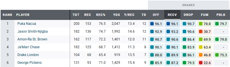 Over the past two seasons, Jennings has seen his role in Kyle Shanahan’s offense increase to the point that he has become a highly dependable target who understands the scheme and its nuances. While his statistical profile doesn’t jump off the page, his grading profile is much more favorable. His 78.9 PFF receiving grade over that span places him among the top 32 qualifying receivers. Most impressively, his 39 contested catches (including postseason) since the start of 2024 are the most among receivers.