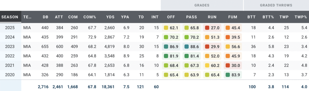 Head coach Nick Sirianni said he “can’t guarantee” that Brown, who earned a career-low 80.9 PFF overall grade in 2025, will be on the team’s roster next season. While offers will certainly be made, Philadelphia will have a hard time improving its offense in 2026 without Brown in the fold. A trade would also leave the team with a hefty amount of dead money on the salary cap.