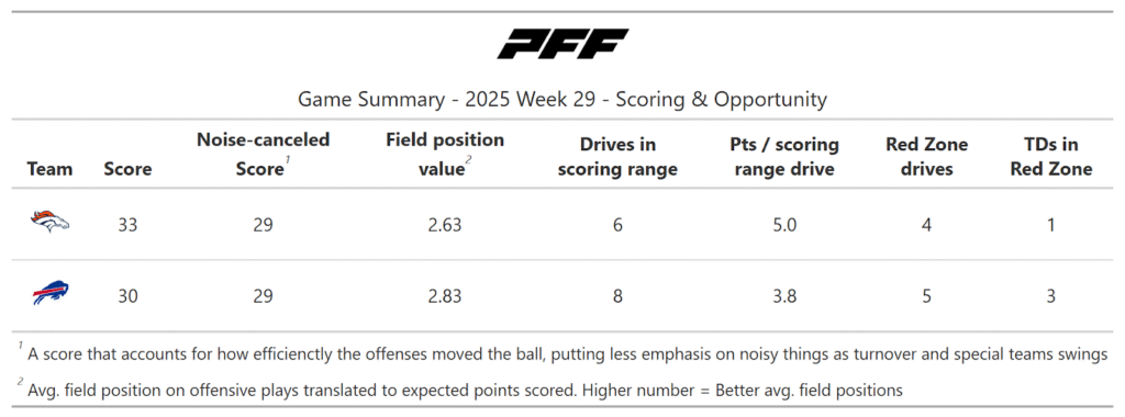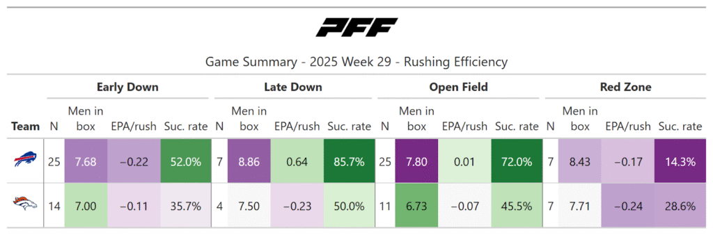 PFF broke down the advanced metrics immediately after every game of the divisional-round slate, giving an in-depth look at the numbers behind every contest.