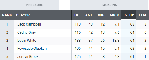 - Age is but a number: Even with more than two decades of combined experience, Bobby Wagner and Demario Davis continue to stand among the league’s best, with both finishing the season ranked inside the top eight at the position.