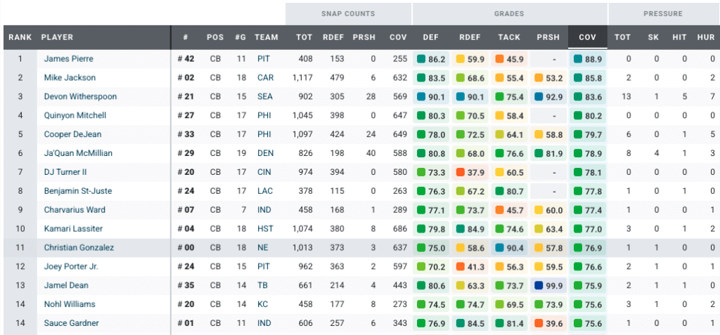 After a slow start, Gonzalez finished the season strong, highlighted by an 86.8 PFF coverage grade in the Super Bowl. Overall, Gonzalez ranked 11th among 109 qualifying cornerbacks in PFF coverage grade (76.9) in 2025. He allowed a passer rating of just 57.0 when targeted, which ranked fourth at the position.