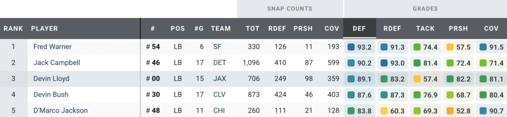 Highest-Graded LBs in the 2025 Regular Season