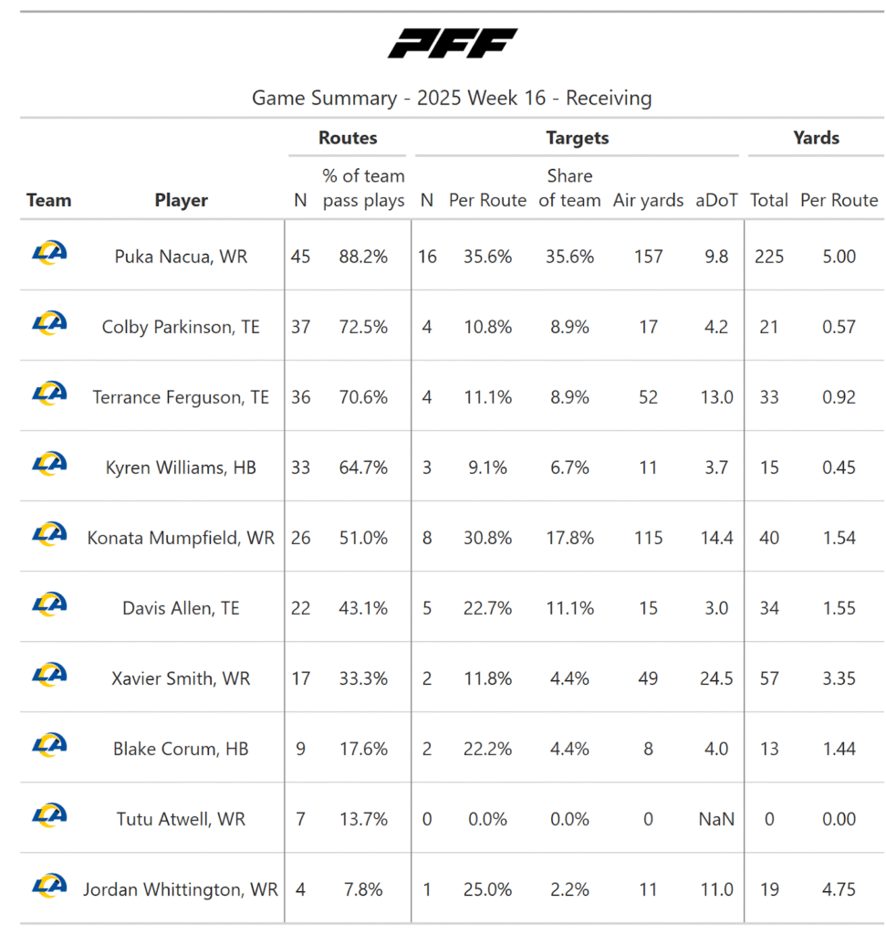 It says something about a receiver when it feels like they were shut down for most of a game and still finish with a team-high 96 yards on 12 targets. Cooper Kupp and A.J. Barner both added two crucial catches late in the game.