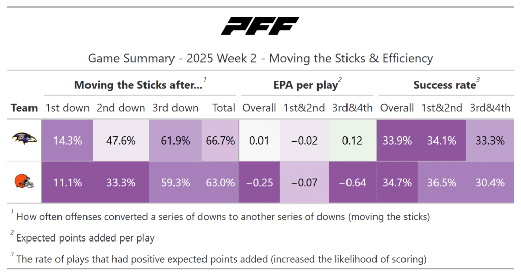 PFF broke down the advanced metrics immediately after every game of the Week 2 slate, giving an in-depth look at the numbers behind every contest.