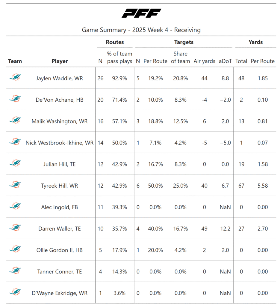 - Tyreek Hill‘s season-ending injury looms large: Miami secured its first win, but not without a price. Just as it seemed the Dolphins' offense was getting into a better rhythm, Hill suffered a dislocated knee.