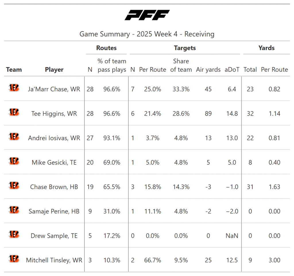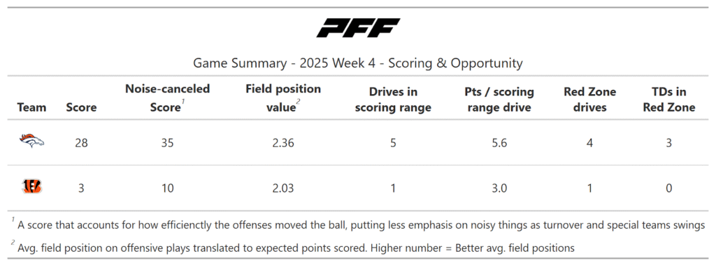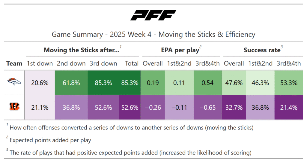 - The Bengals' offense remains a question mark: Jake Browning hasn't been able to jumpstart the Bengals' usually potent attack, producing just three points against the Broncos on Monday Night Football.