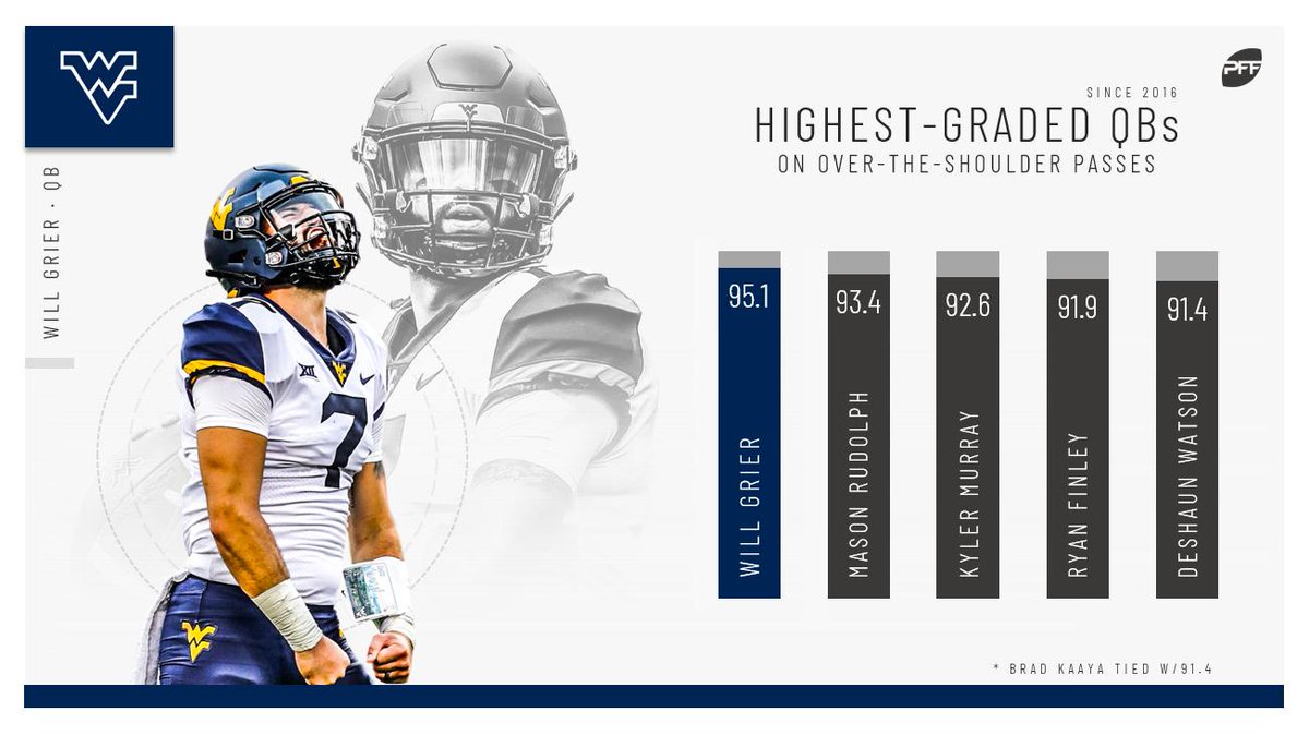 If he does get time in the pocket to target receivers on go routes downfield, watch out. Grier was the best quarterback in the country when targeting receivers on all variations of go routes (traditional go routes, back shoulders, seams, and slot wheels), with a passing grade of 98.1. Grier was masterful on those routes, notching 22 big-time throws compared to just one turnover-worthy play. That kind of proficiency on the go route paired with a 13.2% uncatchable-pass rate (best among the first five quarterbacks drafted) led to Grier grading as the second-best passer in the draft class behind only Murray.